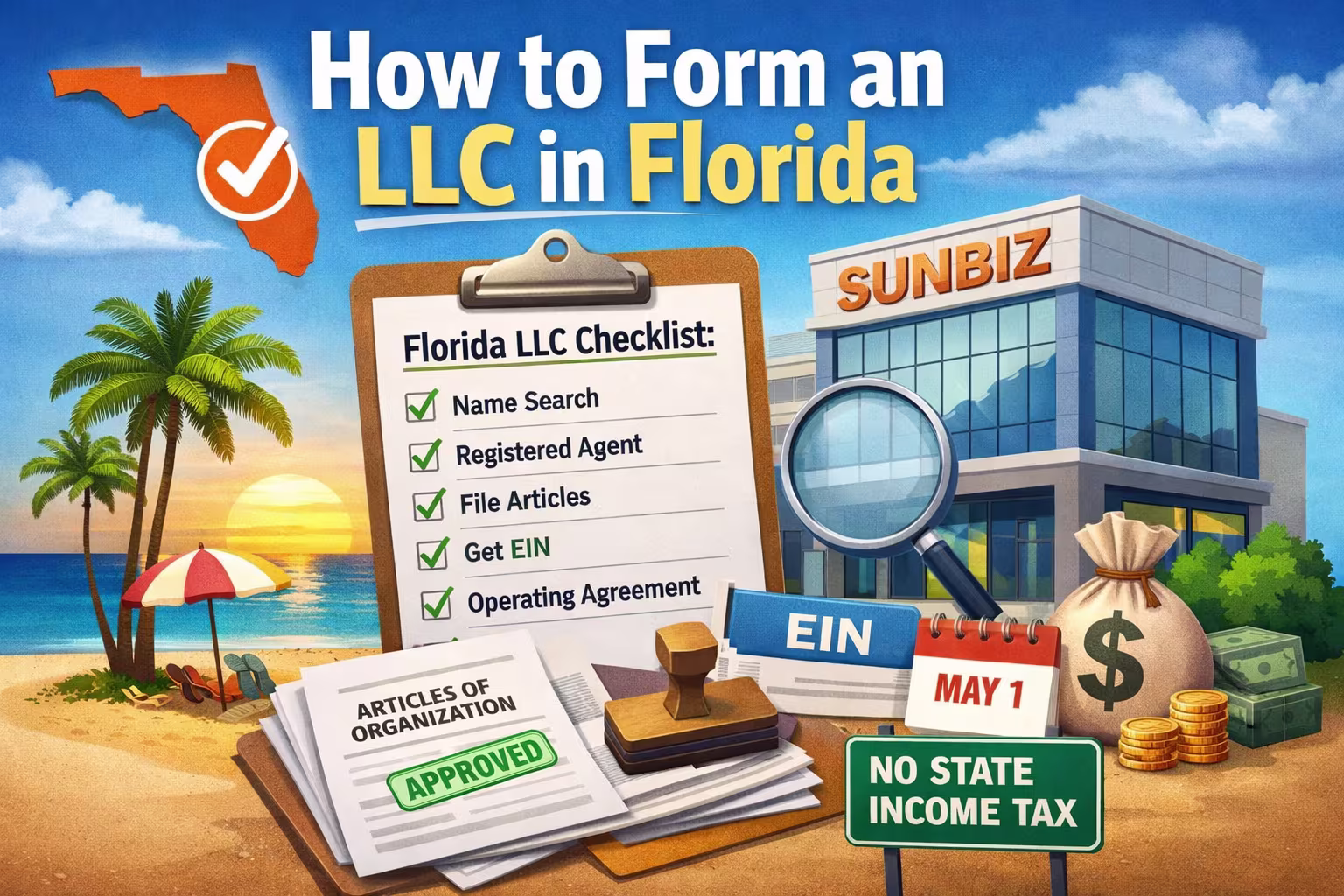 Florida LLCs are low-drama when you nail the basics. Hit Sunbiz, lock a solid agent, write that agreement, mark May 1 on your calendar. Done. Got questions on any part? Shoot.