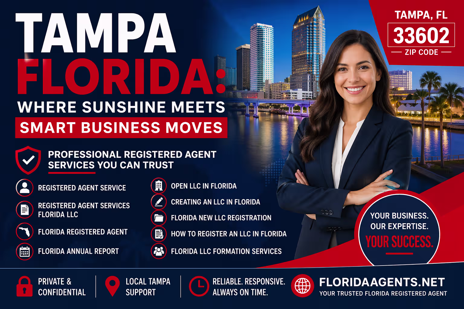 What are registered agent services? Basically, a street address (no PO boxes) open business hours, plus forwarding so you don’t sweat summonses. In Tampa Florida, they’re everywhere—downtown firms charge $100ish yearly. What is the best registered agent service? I’d say ones like Sunshine Corporate Filings—Tampa-based, handle Florida annual report too.